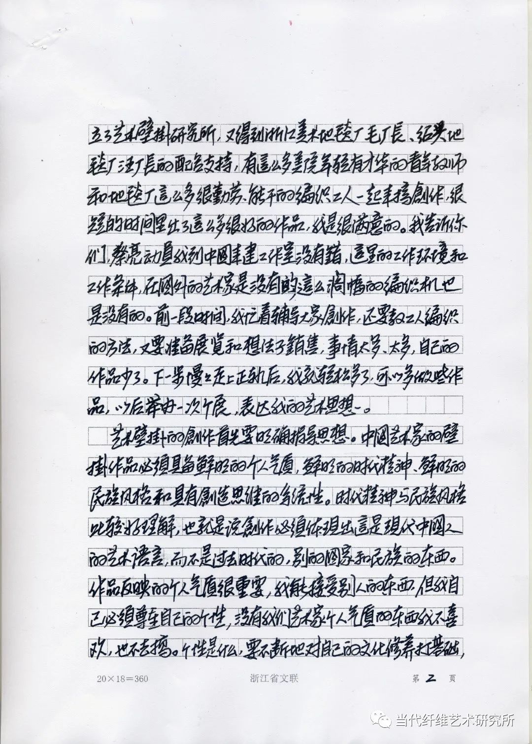 中国的壁挂艺术是有根茎的,而且这根茎非常深厚。保证是走在世界前列的,在世界上都是最有价值的,比如中国的缂丝艺术,非常了不起。要打破现在这个怪圈,要使壁挂回到中国来。我年轻的时候在中国,很喜欢中国的东西,一辈子也忘不了。但那时太年轻,不知海有多深,天有多高。但这次回来,再看到中国的东西,就更觉得了不起,越看越丰富,越看越有意思,越看越觉得有价值。这个阶段是我一生中很重要的时期,我想搞些作品,像中国人那样去构思,对我的创作很有作用,一定会影响我一生的创作。我一定会把我在中国的感受和自己的经验全部教给大家。我只是担心大家的思想不集中,我遇见把自己的创作和你们大家连在一起。我牺牲了在法国巴黎的很多机会和在那边已经形成的艺术氛围到中国来,跟大家一起搞创作就是为了要使壁挂回到中国。