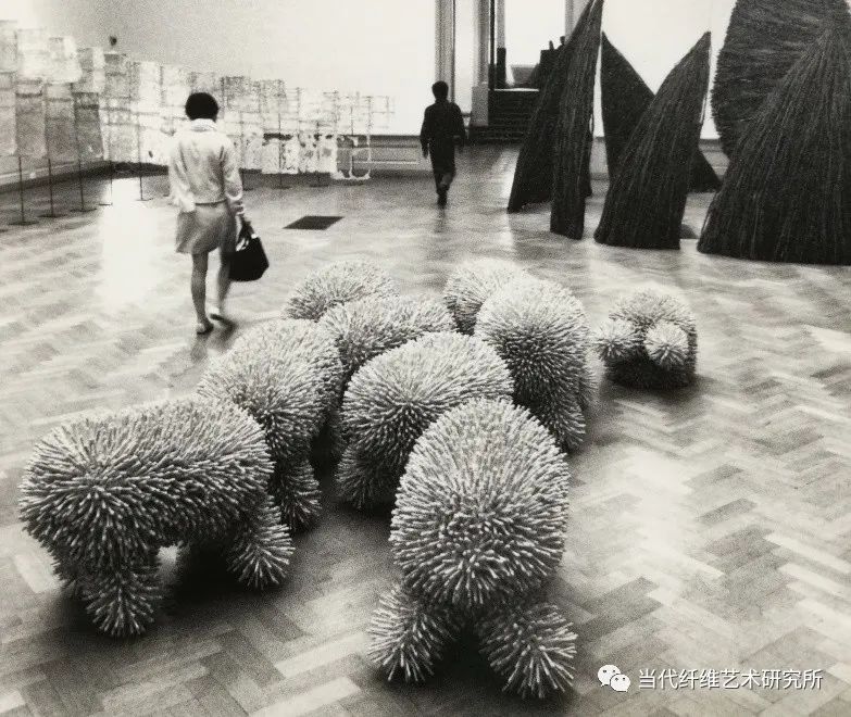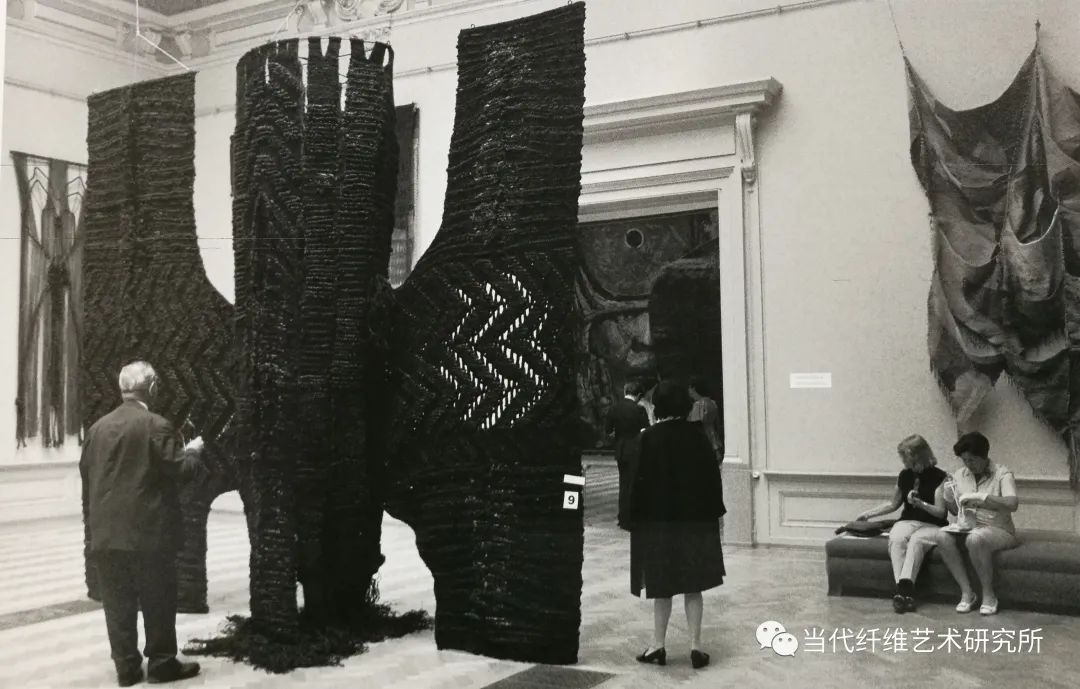 大战后的波兰政府也极力推广手工艺的发展,尤其重视编织工艺,在华沙设立了艺术学校和实践工厂,波兰的纤维艺术发展由此孕育而出。1970年波兰罗兹壁挂双年展创立,更推动了纤维艺术运动的发展。此时的纤维艺术创作成为了一种原创性的艺术创作语言,编织艺术家以各种素材与技法从事创作,作品由平面的形式发展成立体的造型,进而成为三度空间的装置艺术。玛格达莲娜-阿巴康诺维兹(Magdalena Abakanoviz)即是带有强烈表现风格的欧陆立体纤维艺术的代表。她在织机上自由地编织,编织的结构和材料所呈现出的肌理直接成为了一种艺术的语言。她的作品特质为深沉的色彩,粗狂的肌理,厚重的造型和麻类原始材料的运用。她以编织或非编织技法创作巨幅作品,来诠释生、死、绝望等哲学性主题,表达出艺术家极具冲击力的情感,被公认为当今纤维艺术的巨人。波兰是现代国际纤维艺术发展的摇篮之一。这与其历史上盛产羊毛和具有深厚的编织传统密不可分。其周边国家如芬兰、捷克、南斯拉夫、保加利亚、匈牙利、前苏联等地都在60、70年代介入现代纤维艺术研究。波兰艺术家阿巴康诺维兹、保加利亚艺术家马林·瓦尔班诺夫(万曼)(MARYN VARBANOV)、大地景观艺术家克里斯多(Christo)珍娜-克劳德(Jeanne Claude)夫妇就是其中的杰出代表。