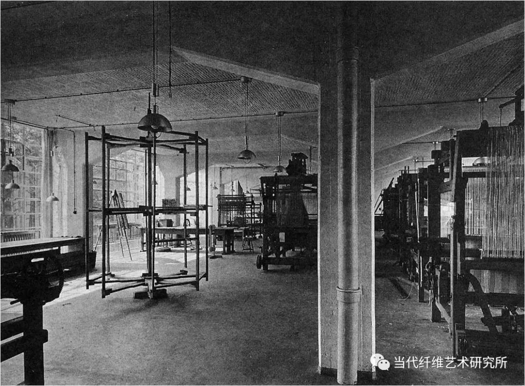学校专门设有供师生们进行纤维材料研究,工艺研究的纤维艺术研究所。可以说,最早对纤维艺术以现代理念进行探索就是从这里开始。首任校长瓦尔特·格罗皮乌斯(Walter Gropius)在包豪斯成立宣言中说:“包豪斯寻求所有的艺术都应合而为一,所有的艺术学科、手工艺门类 - 雕塑、绘画、艺术行当和手工艺都是建筑艺术不可分割的构成部分。这里,包豪斯长远目标是让壮观雄伟的艺术与装饰艺术之间没有界限且建造伟大的整体的艺术作品。”由格罗皮乌斯主持的学校是一所容艺术﹑设计﹑工艺﹑技术于一体的新型美术学校,它的现代性对后来的美术教育,建筑设计影响巨大。约瑟夫-阿尔伯斯(Josef Albers) 康定斯基(Vasily Kandinsky)﹑克利(Paul Klee)﹑伊顿(Johannes Itten)﹑列奥耐-凡宁哥(Lyonel Feininger) 毛利-纳基(Laszlo Moholy-Nagy) 密斯-凡德罗(Ludwig Mies van der Rohe)等艺术大师们的教学思想﹑课程设计都试图把艺术作为一门科学来进行分析﹑研究,其在艺术本体性﹑社会性﹑功能性﹑实用性等方面的科学研究彻底改变了传统美术学院的教学模式。
