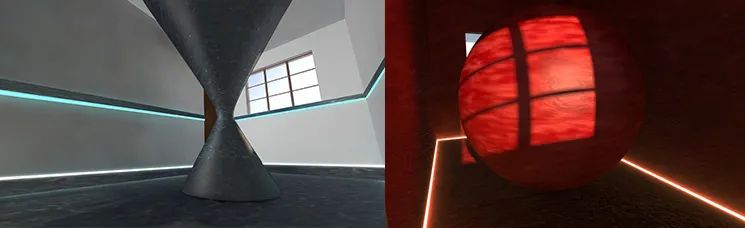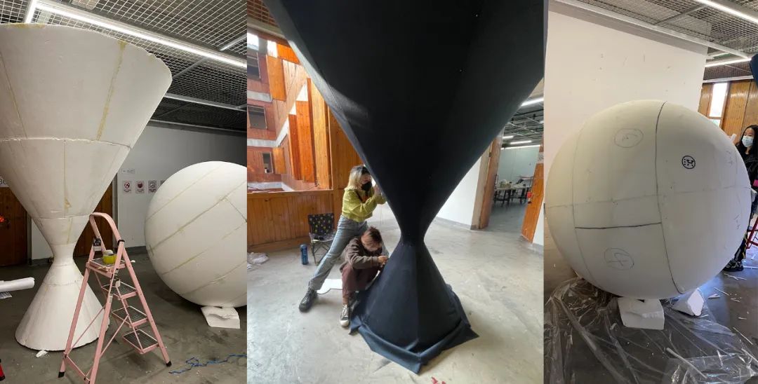 另一间房内,肃穆柔软的沙漏塑造流转空间。观众围绕沙漏的游走行径造就了这个几何空间中的轨迹,温暖的羊绒时刻记录着这些轨迹的温度。
