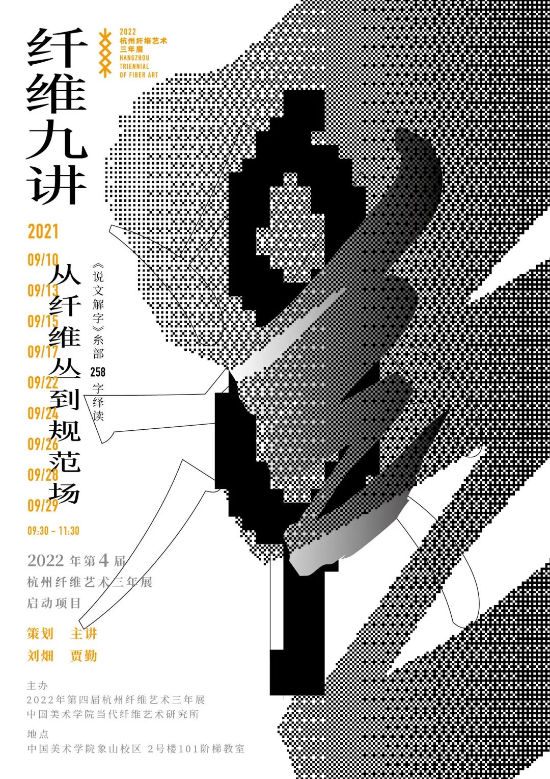 由是,策展组特邀写作者、学者贾勤于中国美术学院纤维艺术系进行“纤维九讲”系列讲座,绎读《说文解字》“糸”部(后简化为“纟”)258字。周而不比,旁及其余,以此作为第四届纤维艺术三年展的启动项目。