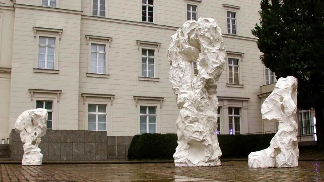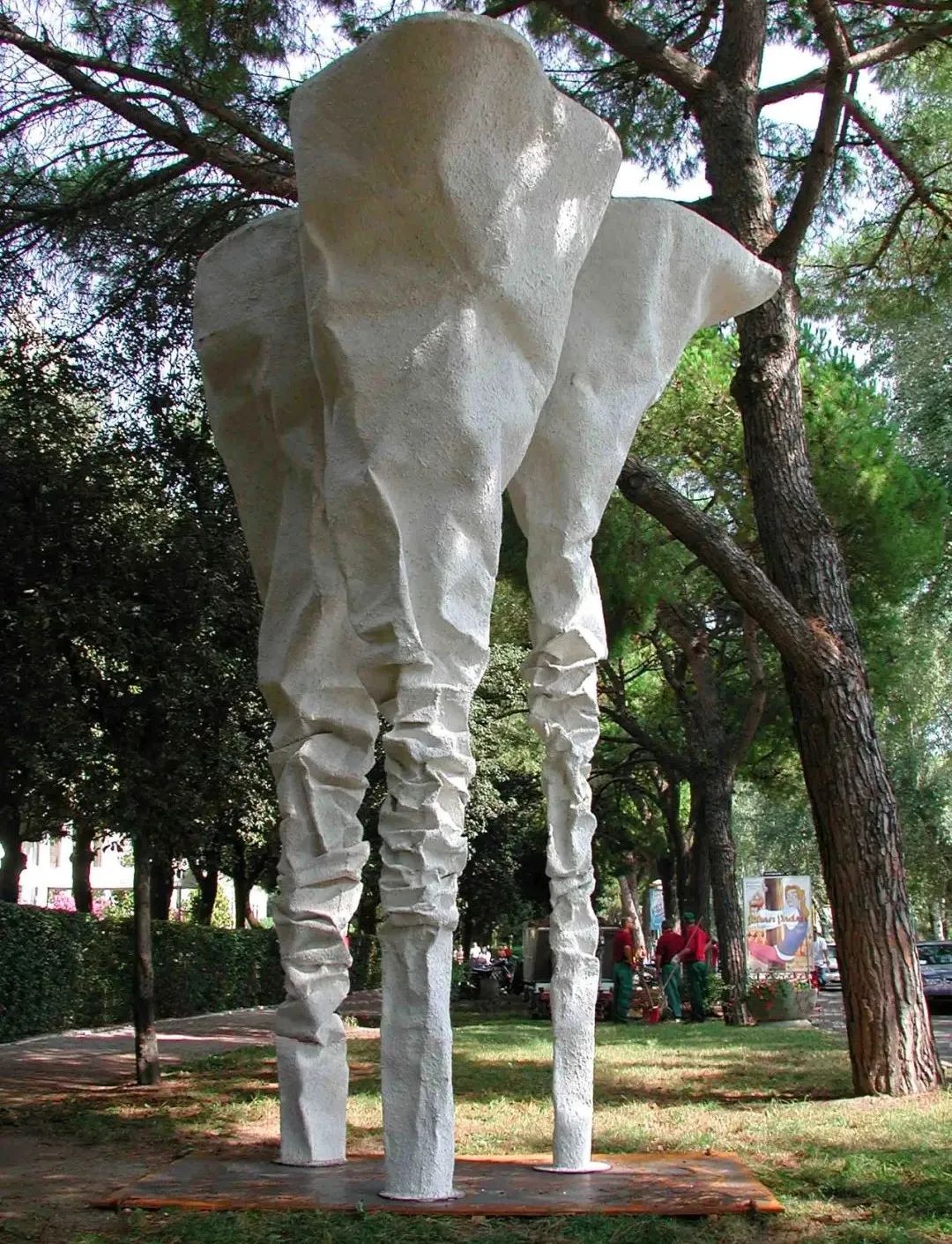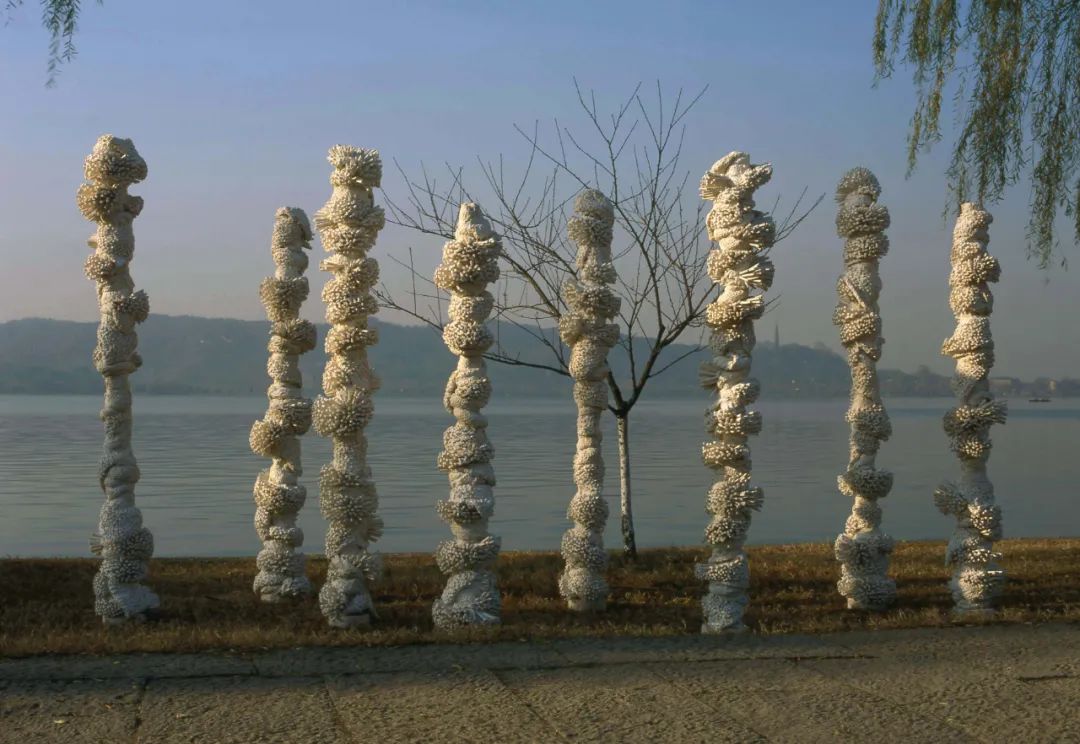 《融》Melt, 2002, (500×200×200cm)×3,镀锌铁网、纸浆,Wire Mesh,Paper Pulp 参加 “OPEN2002 —— 国际雕塑与装置展” / 威尼斯·丽都岛 Open 2002: the 5th Interntional Exhibition of Sculpture