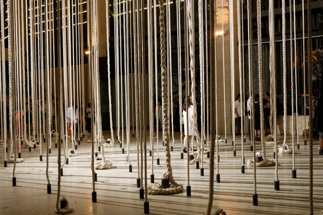 《结之四》Structure 4, 1998-99, 300×800×600cm,麻、宣纸、纸浆 ,Hemp, Xuan Paper, Paper Pulp,参加“1979-1999 中国现代艺术邀请展” / 四川·成都现代艺术馆 1979-1999 China Invitation Exhibition at Chengdu Modern Art Gallery/ Sichuan