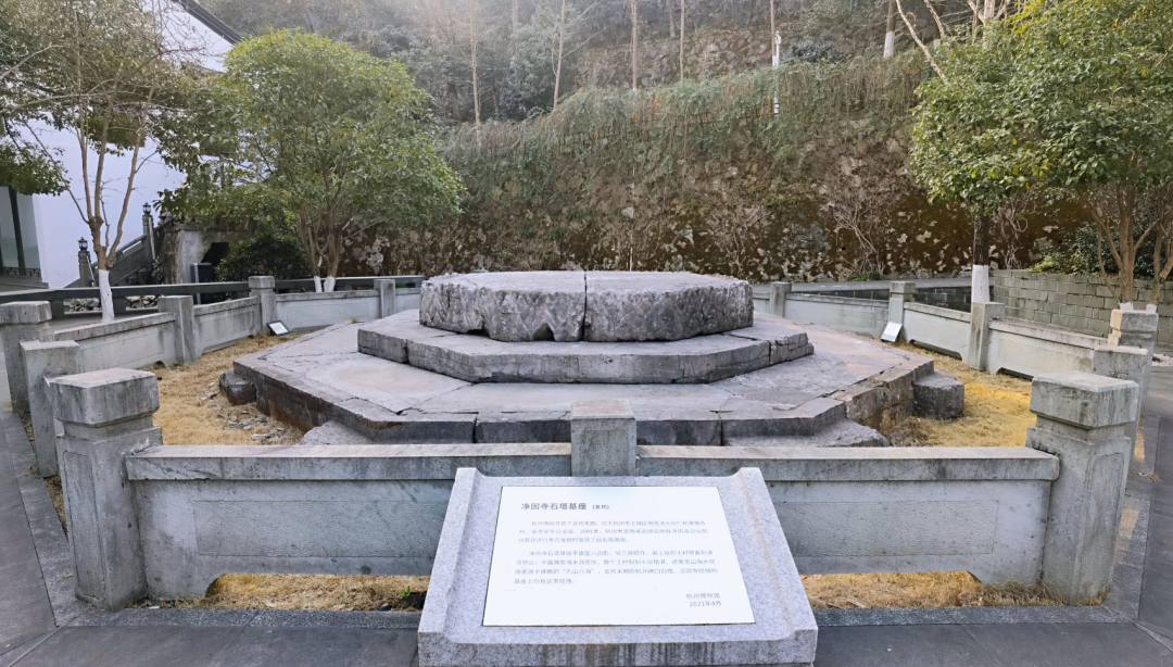 《咸淳临安志》卷二十八有载:“净因石塔,在府治前,元系净因尼院双塔,上刻佛像经咒。今在民屋后,风雨晦冥,间有祥光如燃灯。”