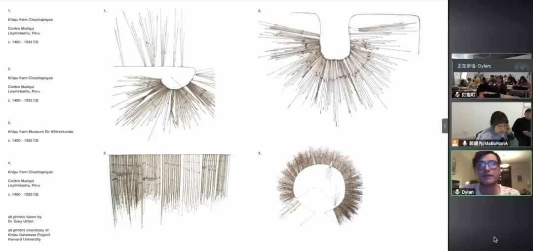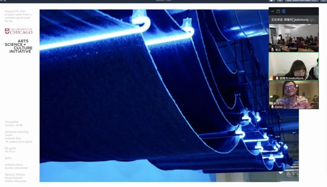 在线讲座截图,作品技术原理及金属纱线种类的特性